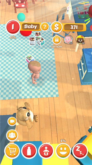 2、这时候你发现自己成了一个熊孩子,你可以进行爬行、走路等行为。