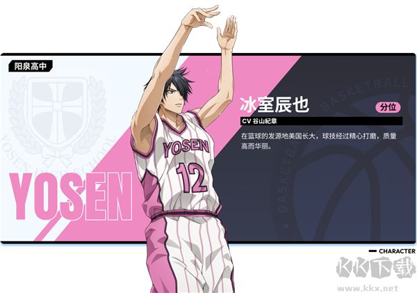 5、冰室辰也 - 分位:于美国篮球发源地成长,球技打磨精湛,兼具华丽与实力。