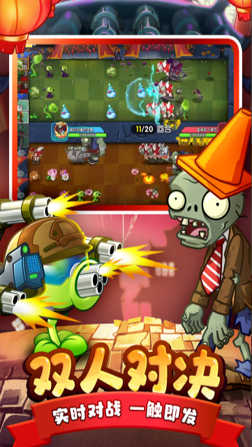 全新「双人对决」玩法来啦!在线匹配一名旗鼓相当的对手!布置我方植物守住底线,合理分配有限的阳光资源,向对手场地发起僵尸攻势,加油!胜利就在前方!完成每日、每周任务,获取丰厚的等级奖励。更有由疯狂戴夫友情赞助的"锅锅杯"同期开幕,通过挑战胜利积攒星星,提升至更高的段位,可以解锁海量段位奖励哦~[基因编辑 激发植物小宇宙]全新培养模式正式上线,进行「基因编辑」,发掘每个植物的无限潜力吧!消耗基因原质提炼基因序列,为植物解锁强大且实用的加成效果。首批基因编辑将开放80款植物的基因序列,收集基因精华,提升基因序列的等级,让战斗更加得心应手![全新伙伴 卯兔报春迎新年]三款强力植物加入阵容。兔年生肖植物「双生卯兔」登场,两兄弟的打洞能力一绝,粗心的僵尸一不留神,就会被蹦蹦跳跳的兔子顶到月球上去。新伙伴「长枪球兰」不简单,精通枪术的它,即使是移动靶也能精准命中,对付僵尸更是绰绰有余。现在隆重介绍一下 「豌豆药剂师」,这位豌豆的狂热爱好者想把世间万物都变成豌豆,即使是僵尸也逃不过。新伙伴各显神通,一起期待他们的精彩表现吧