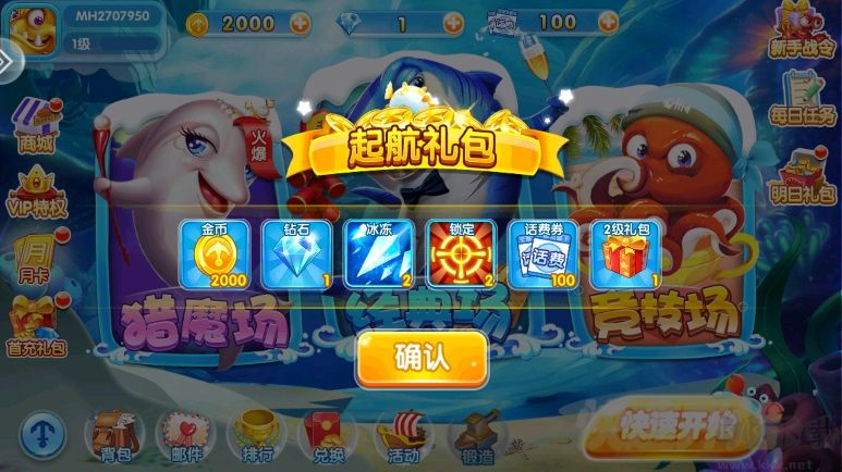 3、进入到游戏中,新手是可以领取到礼包的;