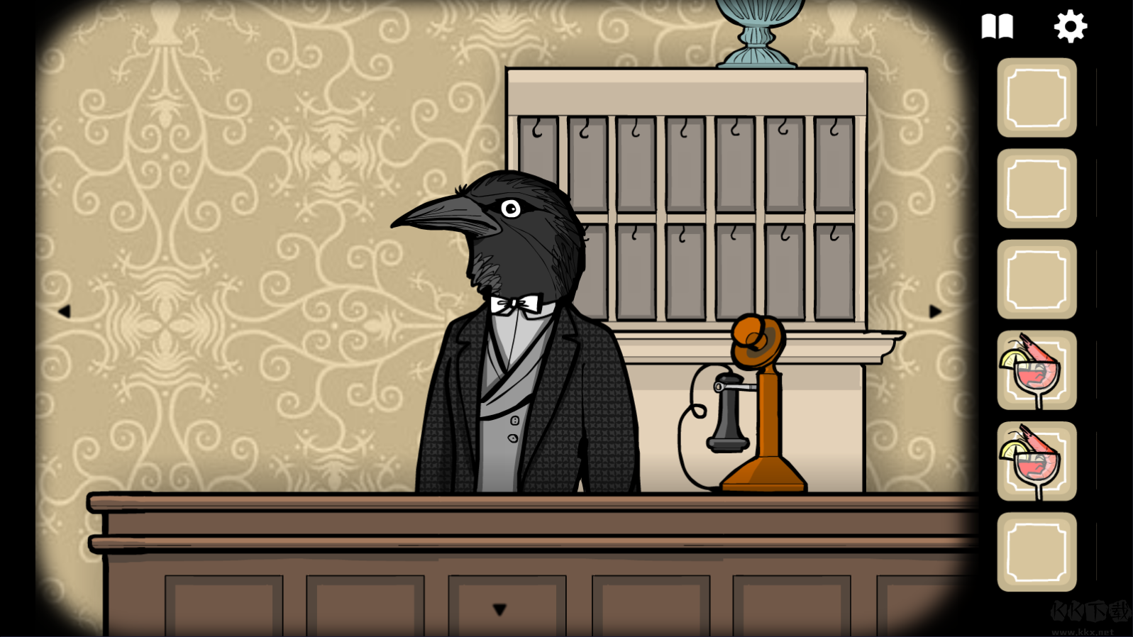 2、进入游戏后,通过箭头移动角色,点击kitchen黄色标牌内物品进入厨房;