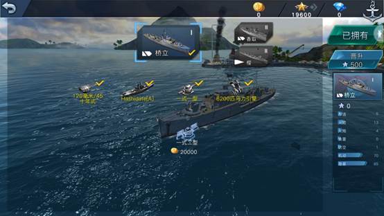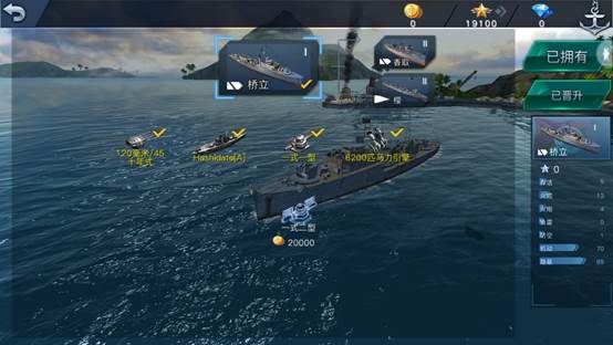 3、解锁战舰之后通过金币购买,就可以正式获得你的新战舰,购买后的新战舰就停靠在港口中。
