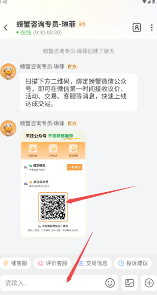 4、在客服对话框,能够直接和客服联系,也能扫码加微信联系!