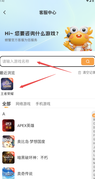 2、进入客服列表,选择对应的游戏,每个游戏客服不一样;