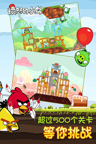 1. 独特的游戏玩法:是一款独具特色的物理学游戏,玩家需要拖动小鸟,计算角度和力度,把小鸟射出去,打破关卡中的障碍物,摧毁绿色猪的堡垒,获取高分。