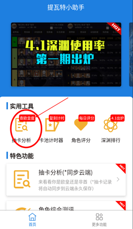 1、首先下载安装好软件并进入,找到特色功能-抽卡分析并点击进入
