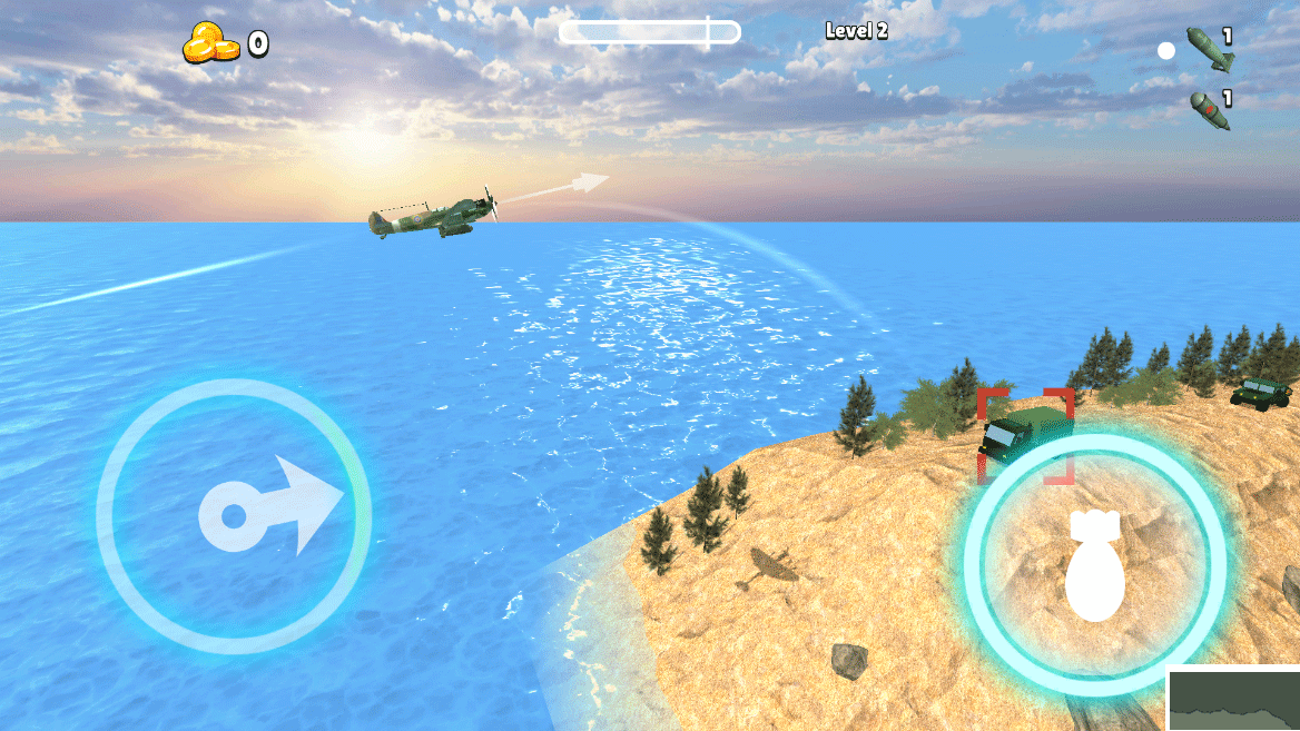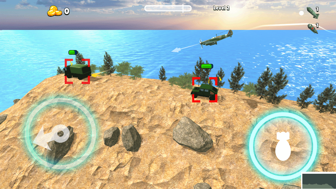 1、游戏玩法就是操控你的飞机去炸毁敌方的运输车,游戏的视角很独特,给玩家一种身临其境的游戏体验。