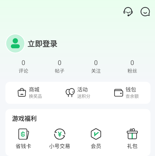1、登录游戏客户端,然后点击底部的我的,进入个人主页,点击顶部的立即登录。