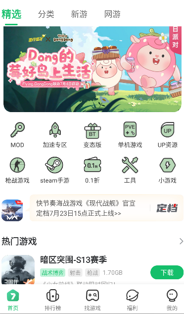 7723游戏盒最新版是一款最新版本的优质手机助手工具,给你意想不到的全新优质新体验,更多好玩的游戏内容等你来解锁,感兴趣的千万别错过机会了。超多趣味的游戏资源都在这里直接获取,更新的速度非常快。国际服游戏都能免费下载,每个资源都有详细的介绍说明,给你全新的使用体验,