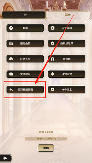 3、然后在设置页面点击其他选项,点击回到标题画面,这样即可。