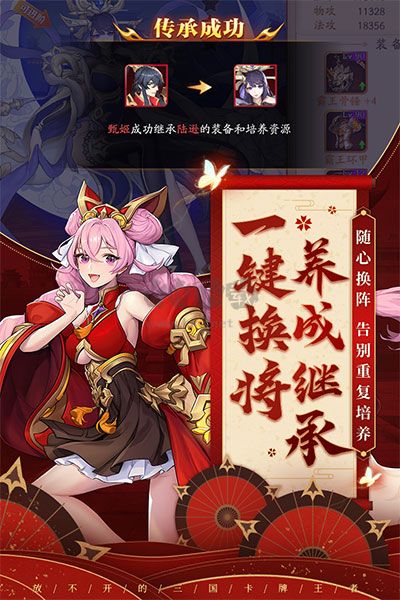 想要尝试更多的阵容组合,却因为缺乏武将养成资源而作罢?本作中不存在这样的问题。玩家替换武将时直接点击阵容界面的"换将"按钮,选定目标武将后一键即可继承装备、进阶、等级等养成资源。继承操作方便快捷,只需换将就能够实现不同的阵容组合,省去培养多个武将的资源浪费,玩家也能够将体力用于体验更多的精彩玩法。