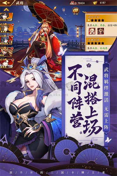 阵容搭配机制全面优化,鼓励玩家混搭武将,突破国别阵营界限,武将无需上阵,拥有即成羁绊。近百位武将技能各有所长,有机搭配打造丰富作战流派。玩家能够在九宫格阵位中自由排兵布阵,站位变换皆可影响战局风云。阵容太多担心重复培养?一键换将即可继承养成资源,千百种组合无负担随心创造。
