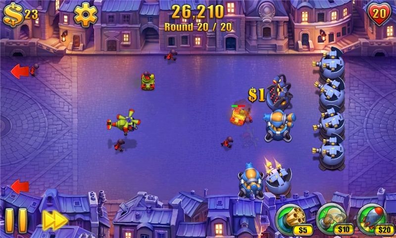 3、多种关卡模式,高自由度的布阵,丰富的炮塔和道具种类,任玩家发挥想象力和战略才能。