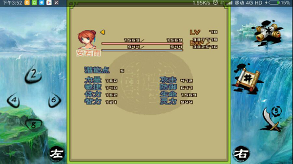 3、在游戏场景中,使用上,下,左,右键或2,4,6,8键控制主角走动,确定键或5键对话和调查,右软件或#键打开人物状态菜单,左软件或*键退出或返回上一级菜单。