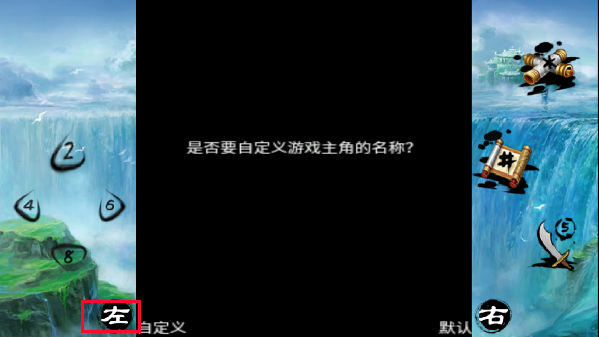 1、初次进入游戏我们可选择是否自定义游戏主角的名称,如果有自定义需求,需要点击"左"进行自定义如kkx分享的游戏界面: