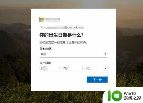 4.国家和地区选择中国,填入出生日期点击下一步。