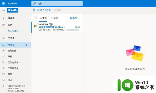 6.创建完成后即可进入Outlook邮箱主界面,可以进行收发邮件操作了。