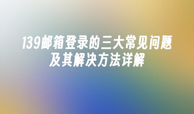 139邮箱登录的三大常见问题及其解决方法详解