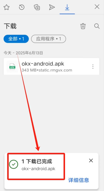 15、这个时候它就给我们跳出来一个提示,下载欧易APP的APK安装包,我们点击【下载】。