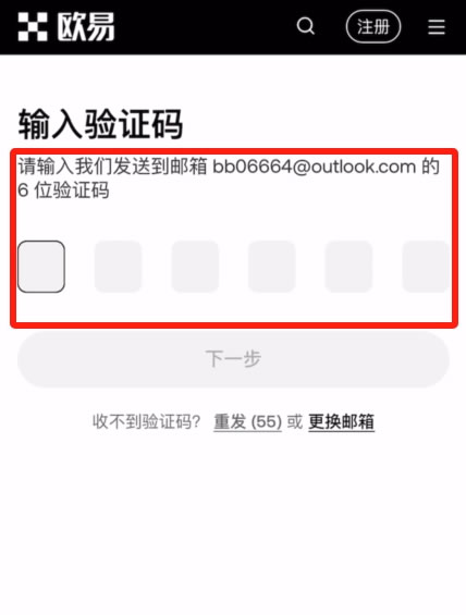 5、这个时候欧易就向我们的邮箱发送了一封验证码,我们回答邮箱查看一下。