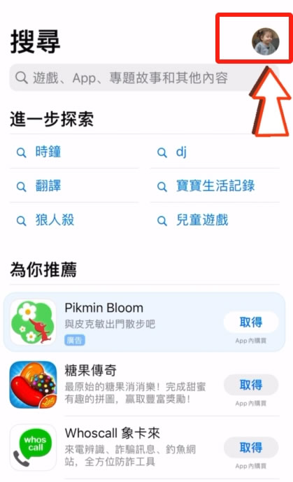 8、买完之后我们就可以来到我们的Appstore,点击右上角的小人头像。