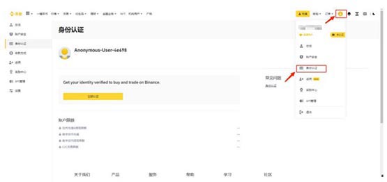 4.身份认证,点击右上角的【用户中心】—【身份认证】,即可完成注册和实名验证。