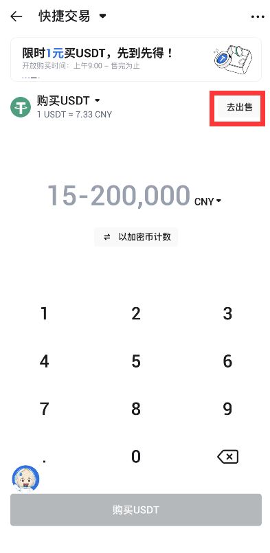 第一步:打开火币APP(官方注册、官方下载),点击“CNY买币”进入C2C买币页面,点击左上角,选择快捷交易模式,点击“去出售”