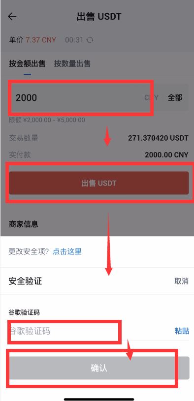 第二步:填写需要出售的金额或者数量,点击“出售USDT”,输入谷歌验证码点击“确认”进行下单,如果没有添加收款方式需要添加收款方式才能进行出售,具体步骤可以直接查看文末小技巧⑤