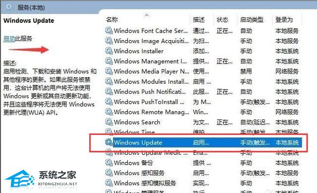 4. 然后再重新启动更新服务,服务启动后再重新进行系统更新即可。