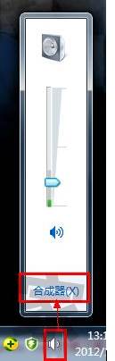 1.点击桌面右下角的小喇叭图标,点击【合成器】按钮: