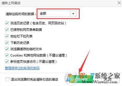 5、将【清除这段时间的数据】下拉菜单修改成【全部】,在下面勾选全部选项,点击【立即清理】即可。