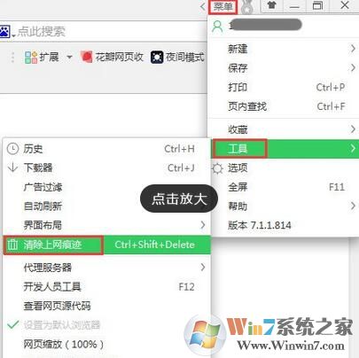 4、打开360浏览器,点击【菜单】-【清除上网痕迹】。