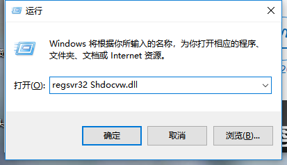 2、接着再次打开运行窗口,输入“regsvr32 Shdocvw.dll”后按下回车键