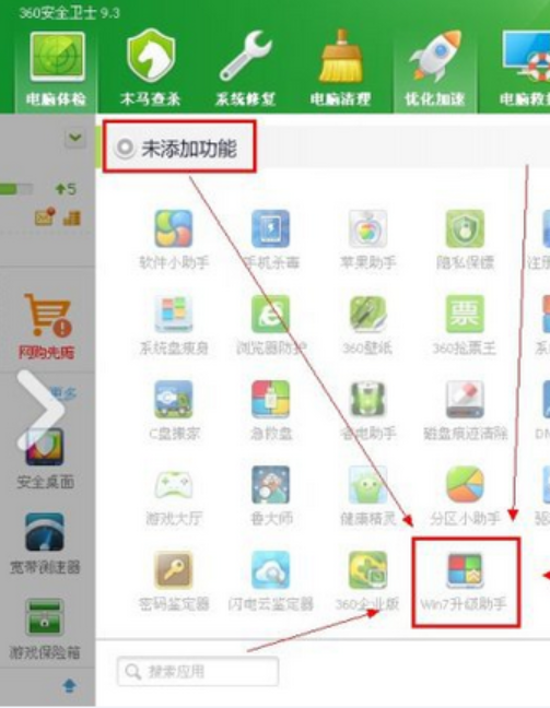 2、然后点击【未添加作用】,就可以看到360升级助手啦。