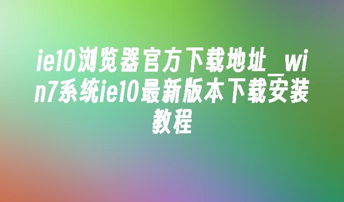 ie10浏览器官方下载地址_win7系统ie10最新版本下载安装教程