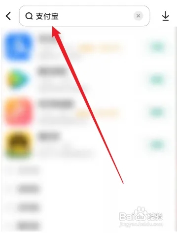 3.然后输入支付宝搜索,就可以找到支付宝应用选项。
