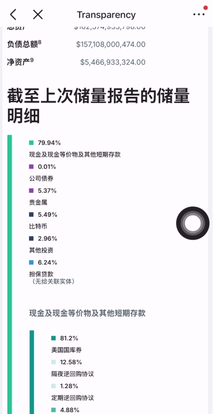你能在这里看到USDT背后储存的资产有哪些,80%都是现金后者是现金等价物,剩下的一些都是其他的价值储藏物。
