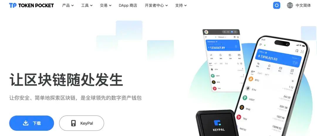 去中心化钱包,简称TP钱包,多链钱包,国人用的比较多,画面简洁,操作简单,对新人比较友好。