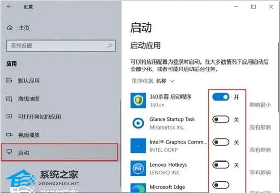 直接使用快捷键【Win+i】进入设置界面,点击【应用】。在左侧找到并点击【启动】,在右侧出现的应用名称列表中关闭不必要的启动项即可。