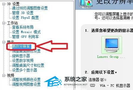 2. 点击左边显示,进入其中的“更改分辨率”。