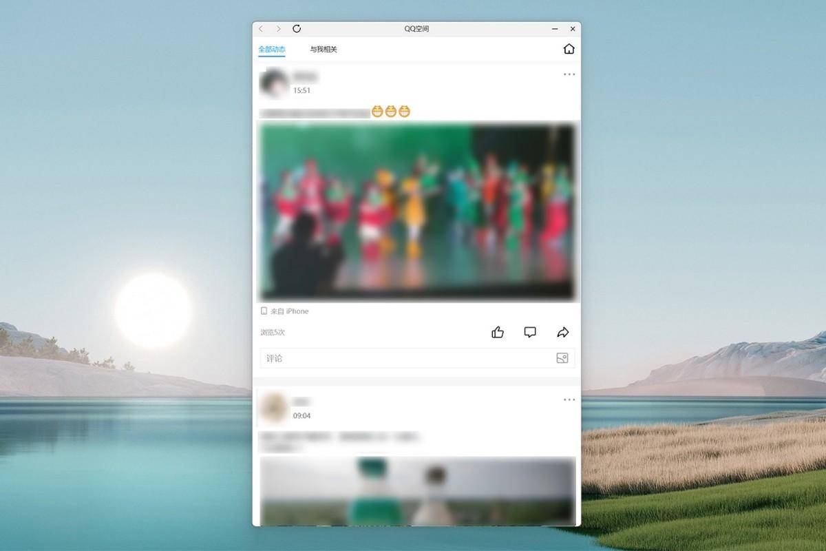 QQ空间,弹出新窗口展示。窗口样式和旧版不一样了,显得更加干净,但呈现方式什么的基本没变。