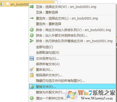 7、接着然后右键,选择替换文件,找到你自己的img,如图:
