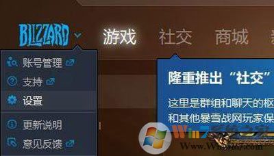 1、点击"访问战网菜单",在弹出的菜单中选择"设置"按钮;
