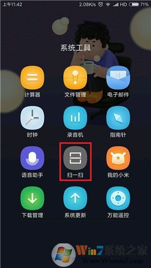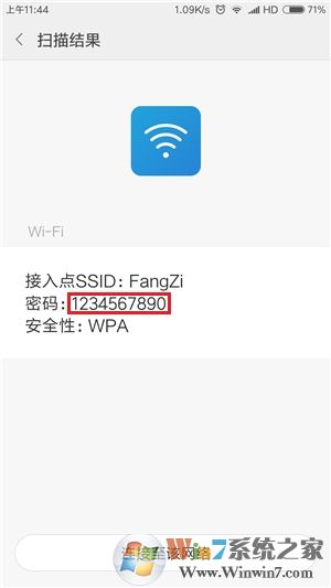 此时可以使用其他手机扫描该二维码,或将屏幕直接截图(按音量下键+电源键、任务键+电源键或下拉任务栏中的截屏按钮即可),然后在桌面上找到并打开"扫一扫"图标(默认在"系统工具"文件夹中),点击右上角的"相片"图标,然后再相册中打开"截屏"文件夹并选择该截图,最后在扫描结果页面中,点一下该热点密码后面的一串星号,即可将其显示出来。