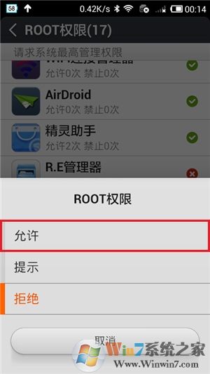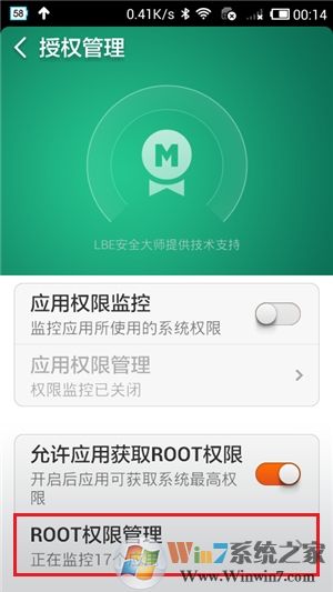 然后需要在系统机制中,允许他们获取到ROOT权限,由于MIUI版本的差异,会有如下两种情况中的任意一种出现,具体操作方法如下: