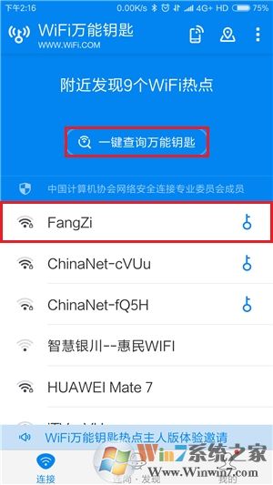 此时,如果用户B运行手机中万能密钥这个软件,软件就会在从服务器中进行查询密码信息,从而让用户B的手机连接上用户A家的wifi。