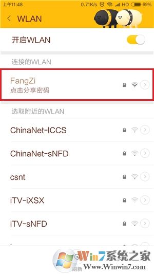 3.若希望查看通过WiFi万能钥匙连接的热点密码,MIUI系统可以直接进入系统设置,并在"网络和连接"一栏中点击"WiFi"项,或在下拉任务栏中长按WiFi功能开关,进入系统热点连接界面。然后在"连接的WiFi"一栏中点击该WiFi热点名称,会弹出其无线密码的二维码图片。