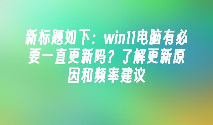 win11电脑有必要一直更新吗?了解更新原因和频率建议