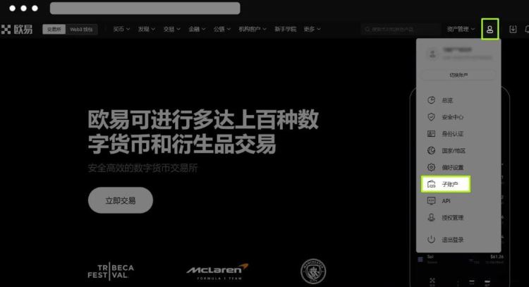 1、打开欧易官网(点击注册),点击页面右上角【个人中心】—【子账户】—【创建子账户】