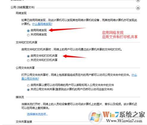 8、启用网络发现和打印机共享;